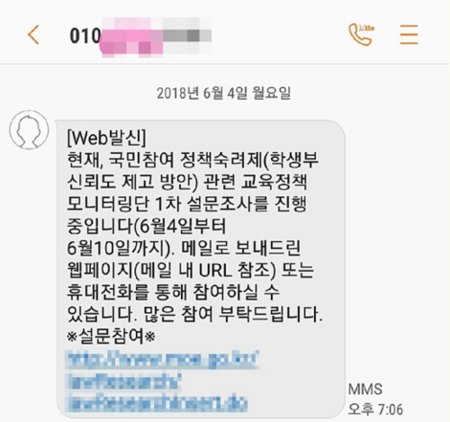 -‘6월 4~10일 1차 설문조사 실시’ 문자메시지 돌려…학부모들 ‘당황’