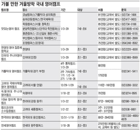 국내 영어캠프는 비용 부담은 덜면서 해외 캠프 못지않은 학습효과를 얻을 수 있어 매년 꾸준한 인기를 얻고 있다. 영어만 사용하는 몰입식 교육에 음악·미술·스포츠 등 다양한 액티비티 프로그램까지 접목해 다양한 영역에서 고루 실력을 키울 수 있다. 초등 5학년인 자녀를 해외캠프와 국내캠프에 모두 보내본 적이 있는 엄마 김선화(38)는 올해엔 국내캠프에 보내기로 마음먹었다. 김씨는 "해외 캠프는 국제적인 안목을 넓힌다는 장점이 있다. 하지만 영어 실력 향상만 따진다면 국내 캠프가 훨씬 효과적이다. 통학형을 선택하면 학기 중에 다니던 수학학원에 꾸준히 다닐 수 있다는 점도 고려했다"고 전했다.