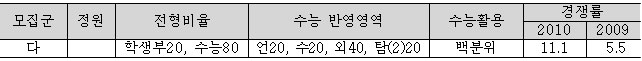 학부 및 대학원시스템(로스쿨, 약학대학, 의과대학, 일반대학원)과 연계해 글로벌 감각과 이론이 튼튼한 전문인 양성을 목표로 한다. 이치우 실장은 “가/나군 모두 상위권 학생들이 소신 지원한다”면서 “등록포기율이 높지 않은 학과이므로, 추가합격을 노리고 도전하는 것은 지양해야 한다”고 조언했다.