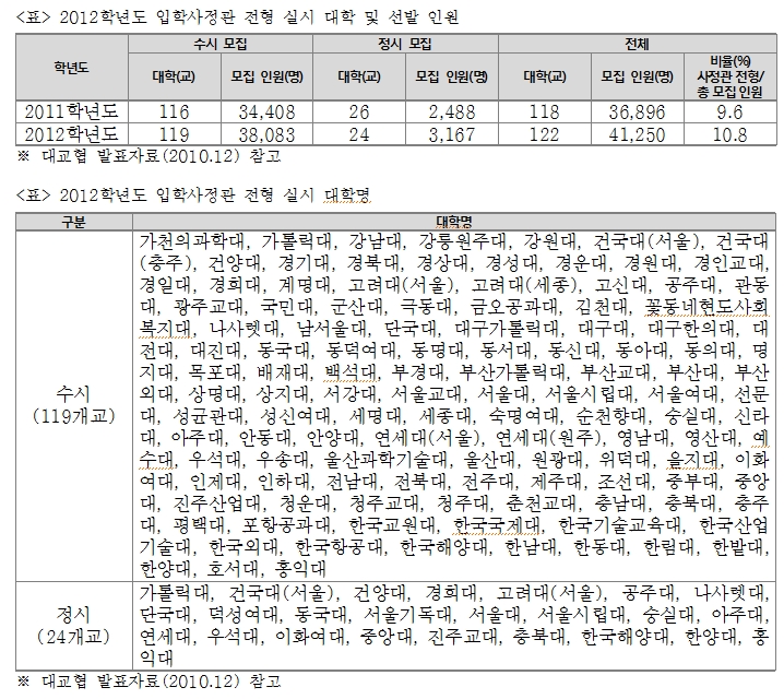 특히 2012학년도에는 수시와 정시 모집 선발 인원을 합한 전체 선발 인원이 감소함에 따라 수시와 정시 모집 경쟁률의 상승 추세가 지속될 것으로 보이므로 성공적인 대입을 위해서는 각 대학의 전형 방법 및 자신의 성적에 대한 철저한 분석과 이를 통한 체계적인 전략 수립이 반드시 뒤따라야 할 것으로 보인다.