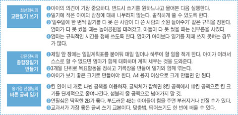 "시간관리법을 가르쳐주고 싶었어요. 아침엔 계획표 칸을 채우면서 시간을 조율하고, 저녁엔 일기를 쓰면서 아침에 세웠던 계획이 잘 수행됐는지 평가합니다. 점점 엄마가 시간 계획에 관여하는 비중을 줄여나가면서 스스로 시간을 계획할 수 있게 할 생각이에요."