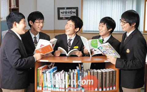 같은 학교 2학년 조윤진·최단비·조은영·김영민 학생은 지난해 10월, 스터디그룹을 결성했다. 요즘은 3학년 때 배울 사회문화 과목을 예습하는 중이다. 조윤진양은 “아직 배우지 않은 과목이라 기본개념을 잘 다지려고 교과서로 공부한다. 각자 교과서를 읽어오고, 그날의 발표자가 자신이 공부한 내용을 설명하면서 모둠원을 이해시키는 방식으로 진행한다”고 설명했다. 한 단원을 마치면 마인드맵을 그리면서 공부 내용을 다시 한 번 정리한다. 김영민양은 “친구들을 가르치고 질문에 잘 답하려면, 무엇보다 내 자신이 공부 내용을 완벽하게 이해해야 하기 때문에 2중, 3중으로 공부하게 됐다”고 전했다.