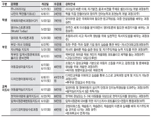 조선일보 교육법인 조선에듀케이션이 운영하는 조선교육문화센터가 5월 수강생을 모집한다. 학생, 부모, 성인 등 다양한 연령대에 맞춘 특색있는 강좌들이 마련돼 있다. 5월 9일부터 선착순 모집.