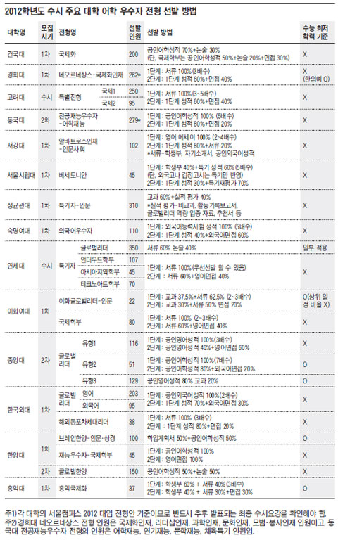 [메가스터디의 대입 성공 특강] 2012 수시 전형 가이드 ④어학우수자전형