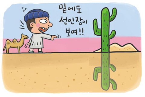 예를 들어 볼까요? 사막에서 자주 보이는 신기루 중에 '아래 신기루'라는 것 있어요. 물체가 거꾸로 보이는 것인데 다음과 같은 원리랍니다. 뜨거운 여름, 사막의 모래 위 공기는 그보다 높은 곳에 있는 공기보다 더 쉽게 뜨거워집니다.