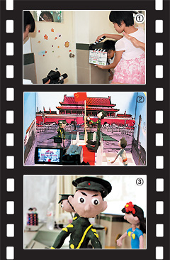 카메라를 들고 분주하게 뛰어다니는 영화 제작팀을 뒤로 하고 계단을 내려왔다. 복도에서부터 빨강·노랑·파랑, 다채로운 빛깔의 꽃과 나비가 등장하기 시작했다. 교실 문을 열자 바삐 움직이는 아이들의 손가락에 시선이 갔다. 굵은 철사에 컬러 클레이를 붙인 뒤 이리저리 만지자 군인, 요리사, 학생이 뚝딱 만들어졌다. "중국으로 놀러 온 한국 친구에게 중국 문화를 소개하는 내용이에요. 아침 일찍 톈안먼광장에서 국기게양식을 보고, 점심으로 베이징 오리를 먹은 뒤 만리장성에 올라가요. 나중에 한국 친구가 놀러 오면 중국의 멋진 예술문화를 꼭 소개하고 싶어요."