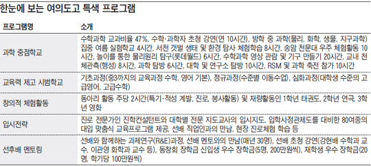 여의도고는 교과부 지정 교육력 제고 시범학교임과 동시에 과학 중점학교다. 의·약학 및 이공계 대학 진학을 목표로 한 학생들이 많아 커리큘럼 역시, 수학·과학 체험학습 연간 60시간 운영, 최상위 학생을 위한 과학고 수준의 고급수학, 외고 수준의 고급영어, 최하위 학생을 위한 영어, 수학 기초과정, 소수 희망학생을 위한 전문(심화)교실 등을 통해 한 학생이라도 낙오되는 일 없이 원하는 바를 마음껏 공부할 수 있도록 지원을 아끼지 않는다. 이런 커리큘럼 덕분에 여의도고 학생들은 대다수 자신의 꿈인 의·약학 대학으로의 진학에도 무리 없이 합격증을 얻고 있어 의·약학 대한 선호 학생들의 여의도고 지원이 끊이지 않고 있다. 실제로 올해 고교 입시 경쟁률은 9.5:1로 서울지역에서도 높은 경쟁률에 속한다. 작년 수도권 명문대학교 진학률은 37.3%이며, 이는 지방 의·약학대학교와 해외대학 진학을 제외한 퍼센트다. 나 교감은 "여의도고 선배 동문 중 의사 수만 1000여명, 판·검사·변호사 등 법조계 700여명(2010년 동창회 자료)이 넘는다. 수도권 명문대학교 진학보다는 학과의 질을 생각해 학생들이 원하는 학과에 진학할 수 있도록 하고 있다"고 했다.
