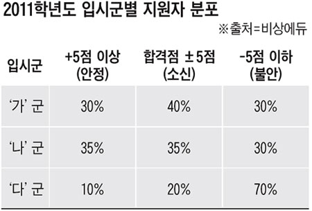 특히 올해 치른 수능 모의평가에서도 괄목할만한 성장을 했다. 지난 6월 수능 모의평가에서는 내신 상위권 학생들을 제치고 전교 1등을 해 교내 학업성적 우수상을 받기도 했다. 그러나 1~2문제가 등급을 가른 이번 수능에서 본인의 기대에 미치지 못하는 성적을 받았다. 백분위 기준 언어 97(1등급), 수리-나 95(2등급), 외국어 96(1등급), 사회탐구 경제 94(1등급), 윤리 87(3등급), 국사 75(4등급)로 최상위권과 상위권 대학 진학의 경계에 해당하는 성적이다. 특히 자신이 전략과목으로 생각했던 사회탐구 영역에서 성적 하락이 아쉬웠다. 비상에듀 이치우 평가실장은 "올해 수능이 쉽게 출제되면서 상위권은 동점자의 비율이 높을 것으로 예상된다. 이 때문에 1~2점 차이로 당락이 결정될 수 있다. 특히 김군의 경우 사탐에서 동점수대 학생보다 백분위 기준으로 3.5점 정도 낮기 때문에 영역별 가중치를 반드시 고려해야 한다"고 분석했다. 본인의 취약점을 상쇄하기 위해서는 언·수·외·탐 30·30·30·10 전형처럼 탐구영역 비율이 낮은 학교를 공략하는 것이 유리하다.