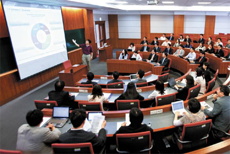 '글로벌 MBA' 과정도 100% 영어 강의다. 학생 3분의 1이 외국인이며, 지금까지 27개국 출신 외국인 학생이 거쳐 갔다. 이론 교육보다 경영 사례를 놓고 스스로 문제 해결 방법을 찾게 하는 실무 중심 교육이다. 해외 대학에서 연수할 기회도 제공한다. 올 초에는 4주간 미국 UCLA와 싱가포르국립대에서 연수를 진행했다. 9월 개강이다.