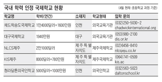 미 메인주에 있는 리아카데미가 운영하는 대구국제학교는 교과 수업 못지않게 예체능이나 봉사활동도 중시한다. 김두원 상임이사는 "지난해 10학년 학생이 미 SAT 시험에서 만점을 받았고, 수상스키 전국연맹 우승, 국내 바이올린 콩쿠르 1위 입상 등 다양한 분야에서 학생들이 두각을 드러내고 있다"고 설명했다. 학비는 1940만원으로, 리아카데미 본교(약 4000만원)의 절반도 안 된다.