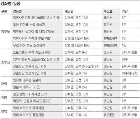 조선일보 교육법인 조선에듀케이션이 운영하는 조선교육문화센터는 6월 여름 학기를 맞아 다양한 강좌를 개설합니다. 조선일보 독자에겐 수강료 5% 할인 혜택을 드립니다(단, 학부모 과정은 제외).