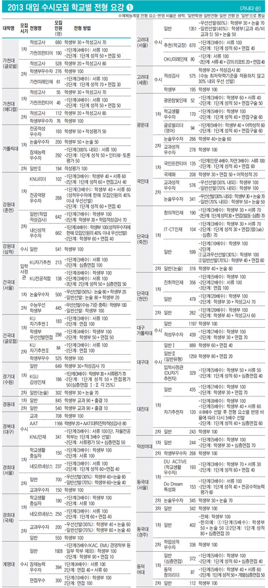 2013 대입 수시모집 학교별 전형 요강 1(가나다 순)