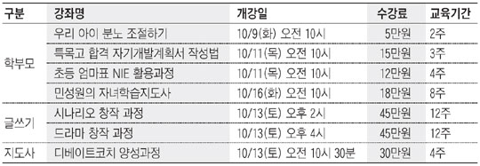 조선교육문화센터는 학부모·글쓰기·지도사 등 다양한 10월 강좌를 마련했습니다.