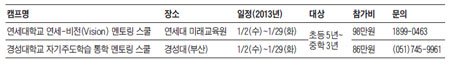 겨울방학을 맞아 아이의 영어실력을 한 단계 올리고 싶으신가요? 대학교에서 진행하는 통학형 영어캠프를 찾아보세요. 검증된 강사진과 교육 과정, 철저한 안전 관리로 안심하고 아이를 맡기실 수 있습니다. 굳이 해외에 나가지 않아도 하루 8시간씩 자연스럽게 영어 사용환경에 노출되므로 안전과 비용 면에서 효과적입니다. 집에서 가까운 학교로 신청할 수 있으며, 방과 후엔 기존에 다니던 학원을 계속 다니거나 다른 과목 공부를 할 수 있는 장점도 있습니다. 단기간에 실력 향상을 극대화할 수 있는 대학교 통학형 영어캠프에 많은 참여 바랍니다.