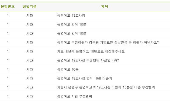 또 다른 네티즌은 “수능 볼 때 이 이야기 들었는데 정신이 없어서 그냥 지나쳤다. 어디다 신고해야 하나?”고 물었고, 해당 고사장에서 시험을 봤다는 한 네티즌은 “(감독관이) 십분 전에 풀라고 했다. 제2감독관한테 ‘이거 부정행위 아니냐’고 물어보니 제1감독관이 ‘그냥 풀라’고 말했다”고 주장하기도 했다.