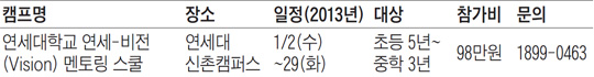 ●대상: 초등 5년~중학 3년(초·중등 별도 운영, 학년별 선착순)●문의: 1588-9355 edu.chosun.com/mentor