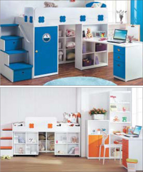 서랍장·책장·침대·옷장…. 자녀 방에 이런저런 가구를 마구잡이로 들여놓으면 공간은 금세 꽉 차버린다. 밴키즈 시스템 가구는 침대·책상·서랍장을 연결해 공간 효율성을 높인 게 특징. 벙커 침대(침대 높이를 올려 아래 공간을 수납용으로 쓸 수 있도록 설계한 침대)는 일반 1층 침대로 높이를 조절하게 돼 있어 자녀가 성장한 후에도 사용할 수 있다. 침대 아래쪽 수납공간은 책상과 배치하면 학습 공간으로 변신, 자녀 학년이 올라가면 공부방으로 전환하기 좋다.