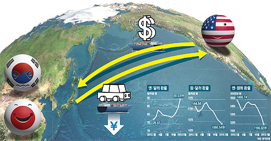 자동차 이외에도 가전제품이나 선박 등 우리나라와 일본이 국제시장에서 경쟁을 벌이고 있는 산업은 엔저 현상에 큰 타격을 받을 수 있어요.