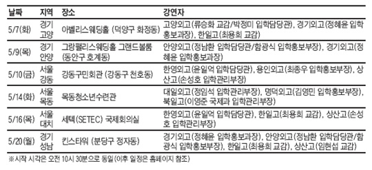 조선에듀케이션은 5월 한 달간 2013 전국 특목·자사고 입시 설명회를 개최합니다. 설명회장에선 전국 14개 특목고·자사고 입시 담당자가 직접 강연자로 나서 학부모의 궁금증을 풀어드립니다. 특목·자사고 입시를 고려 중인 초·중학생 학부모 여러분의 많은 참여 바랍니다.