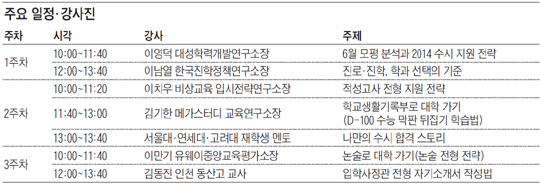 조선미디어그룹 교육법인 조선에듀케이션은 이달 말일까지 2013 전국을 돌며 특목·자사고 무료 입시 설명회를 개최합니다. 최근 대입 전형이 간소화되면서 교육과정을 자유롭게 편성, 수준 높은 교육을 실시하는 특목·자사고의 대입 실적은 갈수록 높아질 전망입니다. 이에 따라 특목·자사고에 대한 학부모의 관심도 커지고 있습니다. 설명회장에선 전국 14개 특목·자사고 입시 담당자가 직접 강연자로 나서 학부모의 궁금증을 풀어드립니다.