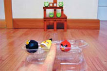 ☞발사대는 홈이 파인 모양의 용기라면 뭐든 사용할 수 있습니다. 앵그리버드 인형이 없으면 작은 지우개나 생수통 뚜껑에 눈을 그려 캐릭터 인형처럼 꾸며보세요.