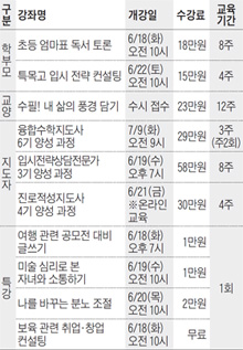 조선에듀케이션이 직영하는 조선교육문화센터는 맛있는공부 독자 여러분의 성원에 보답하고자 6월 프로그램 수강료 10% 할인 이벤트를 실시합니다. 6월에도 학부모·지도사 과정을 비롯, 각종 특강 등 다양한 강좌가 개설됩니다〈상세 내용은 표 참조〉.