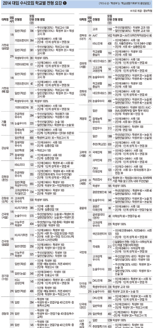 대학 수준이 비슷하면 전형별 절차도 대동소이하다. 하지만 수험생 성적에 따라 세부 차이가 유·불리 요소로 작용하기도 한다. 이 경우 예년 합격 사례와 지원 특징, 경쟁률 분석 등을 토대로 본인의 합격 가능성을 타진해야 한다. 수시 전형에선 상위권 대학과 인기 학과, 교과 반영률과 수능 최저학력 기준이 낮은 전형에 지원자가 몰린다. 하지만 간간이 정시모집 응시가 목표인 ‘소신 지원자’도 섞여 있으므로 동일 모집단위에 속한 지원자 성향까지 꼼꼼하게 검토할 필요가 있다.