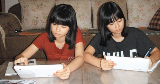 김은혜·지혜(경북 경산여중 1년)양은 쌍둥이 자매다. 이들은 무엇이든 함께하지만 외국어 가운데 언니 은혜양은 영어를, 동생 지혜양은 중국어를 더 배우고 싶어했다. 자매의 고민은 아이펜으로 간단히 해결됐다. 쓰리엘이 개발한 ‘아이펜’은 한국어·중국어·영어 간 언어 호환이 자유롭다. 아이펜 전용 교재인 ‘씨홍스’에 가져다 대면 음성바코드를 인식해 원어민 발음을 들려준다.