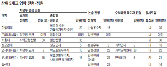 고려대(학교장 추천 전형)·연세대(학교활동우수자 전형)·
