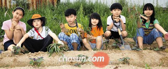 지난 21일 오후 3시, 경기도 고양의 에듀팜 농장. 드넓게 펼쳐진 밭 위로 어린이 십여 명이 옹기종기 모여 있었다. 이들은 하나같이 호미, 삽 등 다양한 농기구를 손에 쥐고 있었다. '2014 고양 에듀팜 콘테스트' 참가자들이다. '콘테스트'라는 말이 붙었지만 뜨거운 경쟁을 떠올리면 오산이다. 백현상(50) 에듀팜 대표는 "농작물이 잘 자라려면 손이 많이 간다"며 "에듀팜에서는 이를 '미션'으로 지정해 팀마다 즐겁게 농사일에 몰두할 수 있게 만들었기 때문에 콘테스트라는 이름을 붙였다"고 설명했다. 이날 고양 에듀팜에서는 장마철에 앞서 상추를 수확하고 밭 주변을 정리하는 농사활동이 진행됐다. 30도를 웃도는 더운 날씨였지만, 아이들의 표정은 하나같이 밝았다. 류가온(경기 파주 한빛초 5년)양은 "한 달 전에 심었던 상추 모종을 드디어 수확하게 됐다"며 "왠지 뿌듯하다"고 말했다.한 시간 반가량 밭에서 땀 흘린 아이들을 위해 '새참' 시간이 마련됐다. 천막 안에는 큼지막한 수박 두 통이 놓여 있었다. 신상우(경기 파주 한빛초 3학년)군은 목이 말랐는지 수박 두 조각을 순식간에 입에 털어 넣으며 "열심히 일해서인지 수박이 더 달다"고 웃어 보였다.