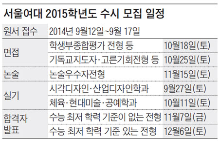 '논술 우수자 전형'은 논술 반영 비율이 전년도 50%에서 70%로 확대됐다. 논술 성적(70%)과 학생부 교과 성적(30%)을 합산해 선발한다. 논술고사는 통합 교과형 문제로 고등학교 교과과정에 맞춰 사고력, 논리적 이해력 등을 측정할 수 있는 문제로 출제된다. 제시문 분석형과 자료 도표 분석형 등 총 2개 문제를 90분간 풀게 된다. 논술고사 기출 문제 및 해설(모범답안), 2015학년도 모의 논술 기출 문제 및 해설(모범답안)은 인터넷 서울여대 입학관리팀 홈페이지(