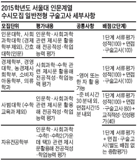 김미송(서울대 경영학과 1년)씨는 "지난해 구술고사는 준비시간 30분을 주고, 7분간 실제 면접이 이뤄졌다"고 말했다. 모든 지원자는 공통으로 수학·영어 문제지를 받았다. 수학 분야에서는 크게 확률·극한·점화식 등이 출제됐다. 영어는 심리학과 관련된 지문 4개의 요지를 파악하고, 원인 분석·활용 방안 등을 묻는 문제였다.