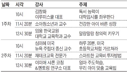 바른 성장·바른 교육! 1만원에 만나는 2014 초등맘 파이널 학부모 강연