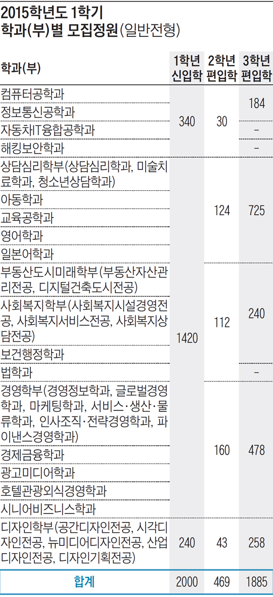 ※이외에도 산업체위탁전형·군위탁전형·특수교육대상자전형·학사편입 등 다양한 전형이 있으며, 일부 학과는 모집학년별 학과명이 다를 수 있으니 입학 홈페이지를 반드시 확인해야 한다.