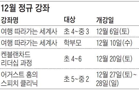 여행 따라가는 세계사·스피치 클리닉·3D 프린터 DIY 체험 교실·통합사회…'맛있는공부 스터디센터' 대치본점 12~1월 정규 강좌 신청하세요