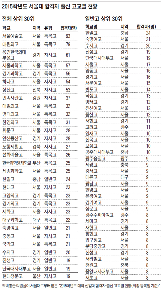서울大 정시모집 늘자… 일반高 합격생 늘었다
