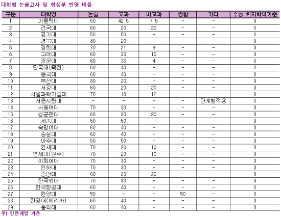 [조선에듀] 한양대 등 수능 최저기준 없는 대학, 논술고사 비중 커