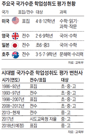 문재인 대통령 국정기획자문위는 14일 성취도 평가를 표집 평가로 바꾸는 내용을 교육부에 제안했다. 국정기획자문위는 이날 "(전국의 모든) 중3, 고2 학생들이 국어·영어·수학 과목(시험)을 보는 것은 문재인 정부가 지향하는 '경쟁을 넘어서는 협력 교육'과 맞지 않는다"고 밝혔다. 이에 앞서 전국시도교육감협의회는 지난 9일 "'국가수준 학업 성취도 평가가 시·도 간, 학교 간 등수 경쟁으로 왜곡돼 원래 기초 학력을 지원하려는 취지가 사라졌다. 표집 평가로 전환해달라"고 국정기획위에 제안했다.