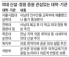 이에 따라 우선 서남대 의대 정원을 전북대와 원광대로 나누어 배분하는 방안이 나오고 있다. 서남대가 전북 남원에 위치한 만큼, 의대 인원을 재배분한다면 의대가 있는 도내(道內) 두 대학에 배분하는 것이 합리적이라는 것이다. 교육부 관계자는 "49명의 의대 입학정원을 전북 밖의 다른 대학으로 유출하면 지역 민심의 반발이 만만치 않을 것"이라며 "전북대·원광대 의대로 정원을 이관하는 것이 가장 상식적인 결정으로 보인다"고 말했다. 전북지역 의료계 관계자는 "서남대 폐교가 결정되면 군산대도 유치전에 뛰어들 가능성이 있다"고 말했다.