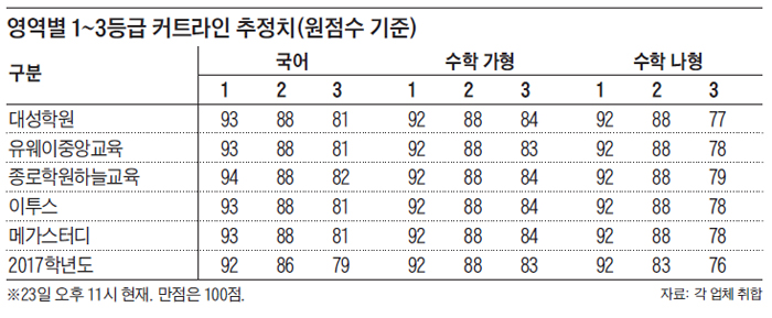 수학2교시 수학 역시 대체로 전년도와 비슷하거나 다소 어려웠다는 분석이 주류다. 이과생들이 주로 보는 가형은 지난해 수능이나 9월 모의평가와 비슷한 수준으로 평가됐다. 문과생이 주로 치는 나형은 전년보다 다소 어렵고, 9월 모의고사와 비슷한 난도였다. 조만기 판곡고 교사는 "나형은 고난도 문제가 4문제 출제됐는데, 큰 틀에서 개념을 제대로 파악하지 않으면 풀기 어려운 추론 문제들이 있었다"면서도 "대체로 어렵긴 하지만 9월 모의고사와 난도가 비슷해 '예상 외로 당했다'는 반응은 별로 없을 것"이라고 말했다.