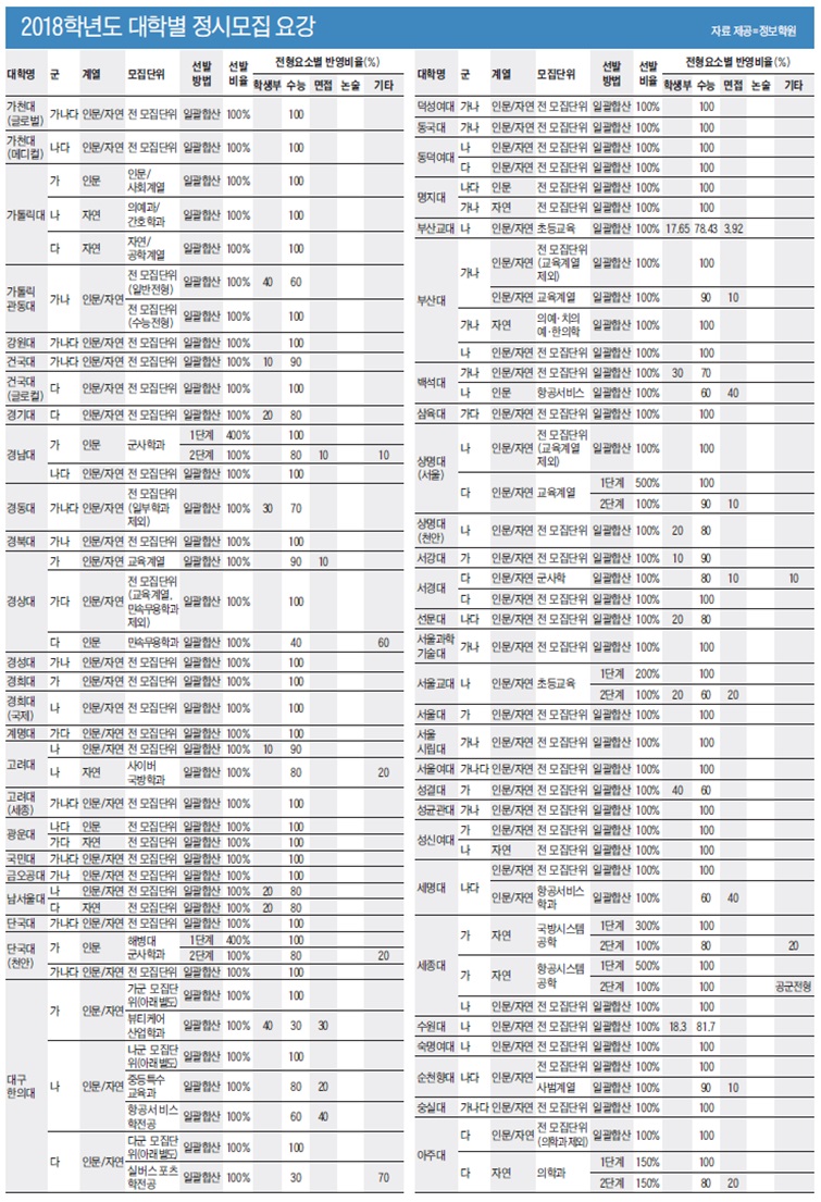 예년 입시결과 '상위 누적 백분위' 참고… 가·나군서 안정·적정 판단을
