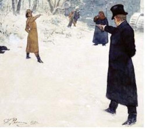 이야기의 전개 과정에서 가장 이해가 가지 않는 부분은 바로 결투 장면인데요. 이유가 참 어이가 없습니다. 렌스키와 오네긴은 친구 사이인데 장난으로 시작하여 장난 아닌 결투로 이어지고 결국 오네긴은 렌스키를 죽이게 됩니다. 이러한 결투는 귀족들 사이에서 자존심 문제로 횡행했던 방법인데요. 앞서 설명한 푸시킨도 결투를 하다 총에 맞아 37세의 젊은 나이로 죽습니다. 미국의 대통령인 앤드류 잭슨도 결투를 하다 총상을 입어 평생 총알을 몸에 갖고 살았다고 합니다. 지금의 관점으로는 허세로 볼 수밖에 없지만 당시 귀족 사회에서는 명예와 자존심을 위한 중요한 과정이었다고 이해해야 할 것입니다.