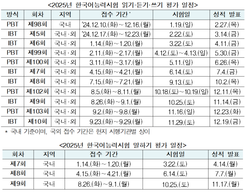 - 2025년 한국어능력시험 일정./교육부 제공.