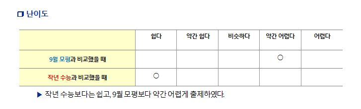 이투스는 이번 국어영역에 대해 “9월 모의평가보다는 변별력 갖출 것으로 보인다”면서 “일부 변별력 높은 문항에서 시간 관리가 중요한 시험으로 선택 과목에서 문제 풀이 시간 확보가 변별의 기초될 것”이라고 평가했다.