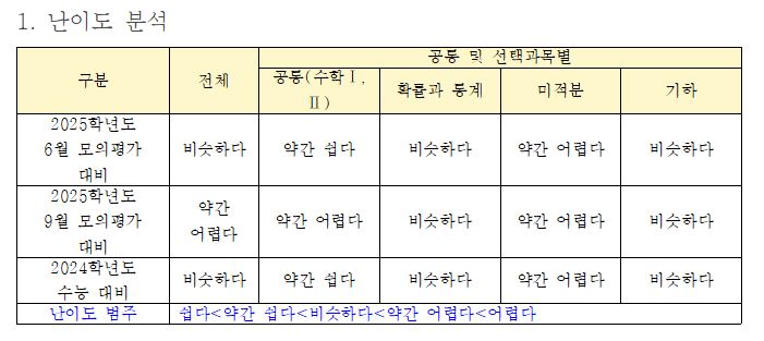 2025학년도 대학수학능력시험 수학영역에 대해 초고난도 문항은 없었으나, 변별력을 확보했다는 평가가 나왔다.