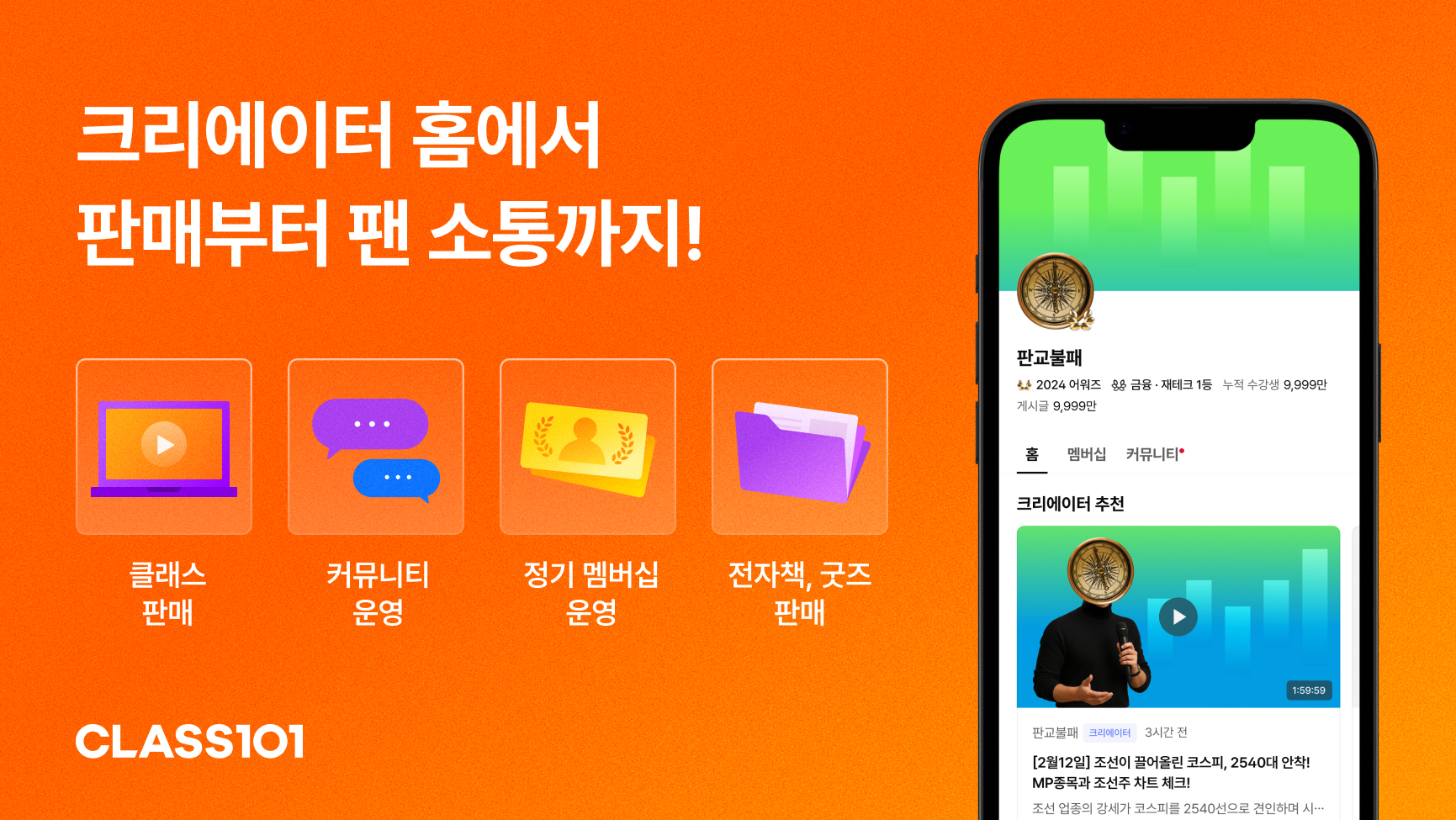공대선 클래스101 대표는 “콘텐츠 제작부터 수익화, 팬 관리까지 원스톱으로 지원하는 크리에이터 홈으로 크리에이터가 자신만의 브랜드 세계관을 구축하고 지속 가능한 비즈니스를 만들어갈 수 있도록 적극 지원할 것”이라고 말했다.