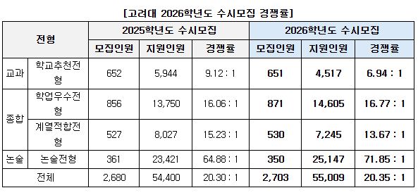 ◇ 고려대 수시 경쟁률, 전년도와 유사한 20.35 대 1로 마감