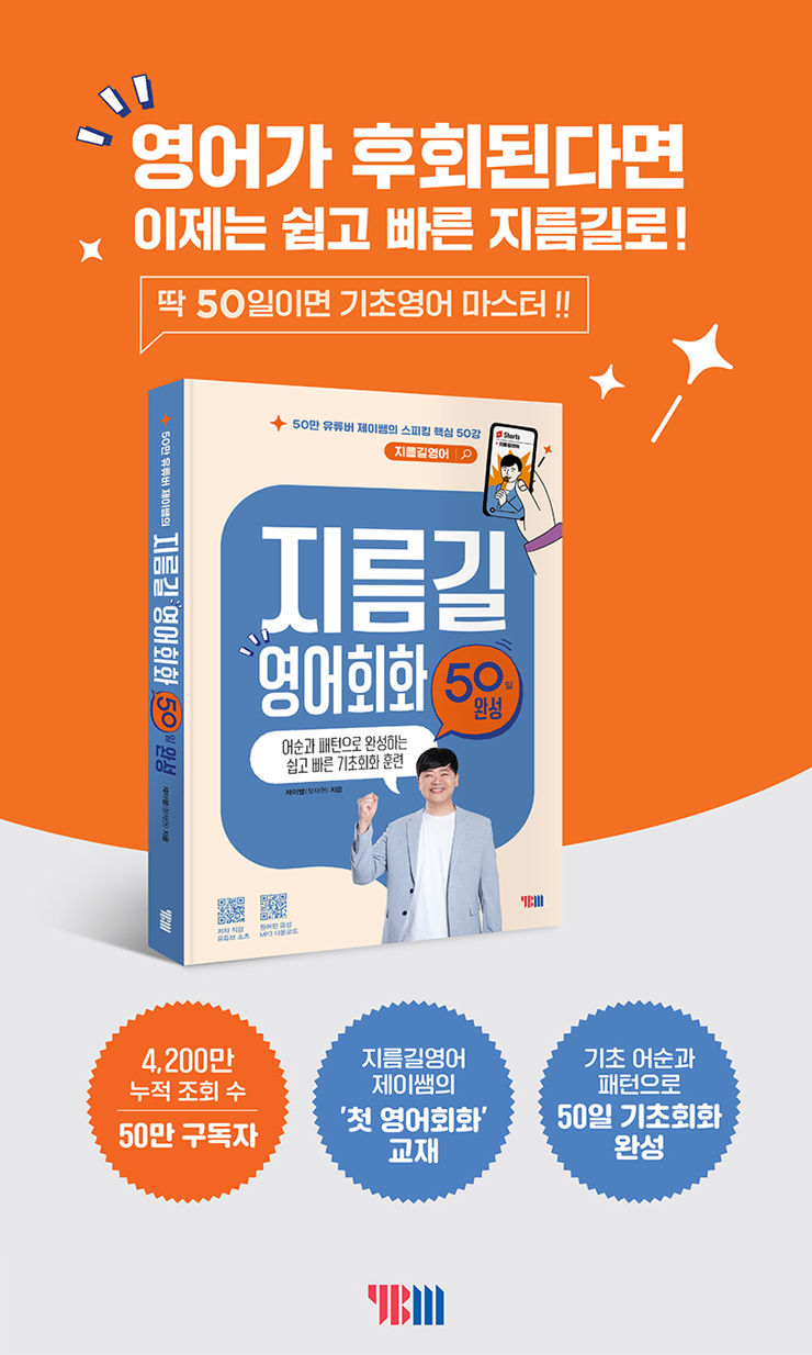 영어교육 전문 출판사 YBM이 유튜브에서 왕초보의 말문을 열어온 스피킹 코치 제이쌤(장재현)의 첫 책 ‘지름길 영어회화 50일 완성’의 예약 판매를 시작했다.