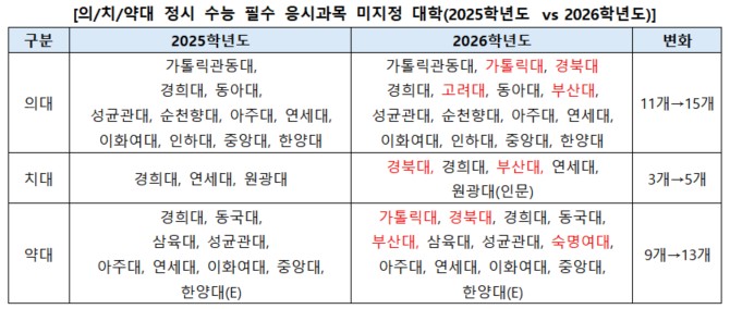 ◇ 의대 39개교 중 15개 ‘사탐 응시 허용’, 치대·약대도 확대