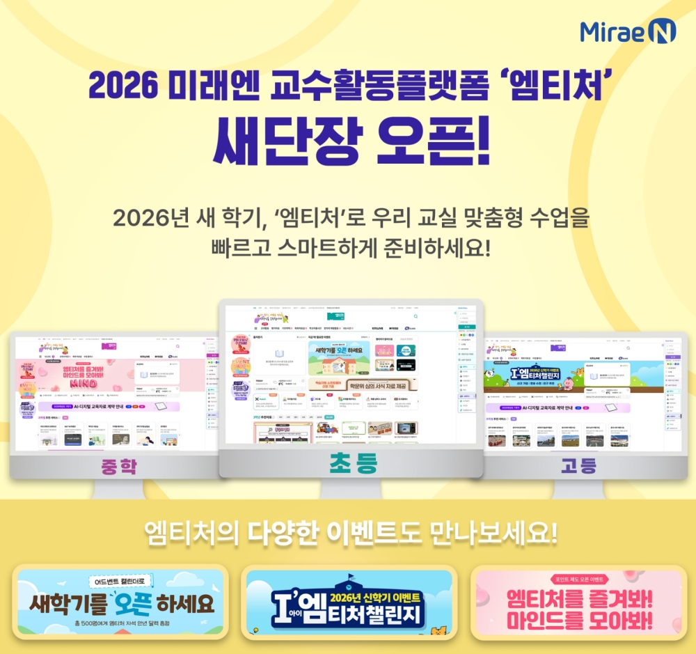 ㈜미래엔이 2026년 새 학기를 맞아 교수활동 지원 플랫폼 ‘엠티처’를 개편했다고 밝혔다.